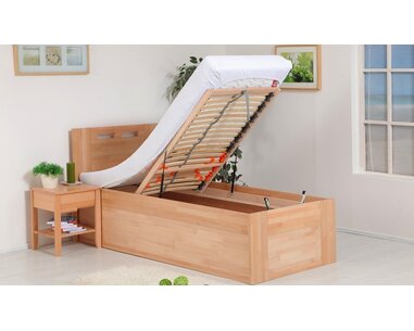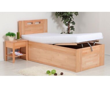 Jednolůžko s úložným prostorem VALENCIA senior 90x200, boční výklop, masiv buk