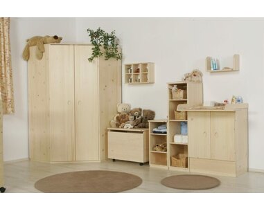 Trojdílná šatní skříň IA898, masiv smrk + lamino je  nalakována průhledným lakem. Šat ...