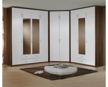 Rohová šatní skříň dvoudveřová IA61550, ořech/bílá