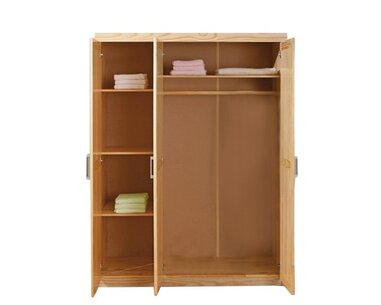 Trojdílná šatní skříň IA898, masiv smrk + lamino je nalakována průhledným lakem. Šat ...