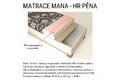 V nabídce jsou čtyři typy matrací. Zvolit si můžete matraci pružinovou, PUR pěnovou, MANA nebo BONO. Matrace PUR je tvořena elastickou polyuretanovou pěnou, patří spíše mezi tužší matrace. Nosnost 90 kg. Matrace MANA je tvořena horní vrstvou 3 cm HR studenou pěnou, která se vyznačuje vyšší pevností a vzdušností. Nosnost 110 kg. Matrace BONO má pak nejvyšší nosnost 130 Kg, kde jádro tvoří 12cm vysoká studená pěna s maximální životností.