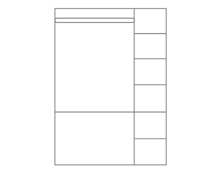 Šatní skříň je vybavena šatní tyčí na ramínka, na kterou můžete pověsit oblečení vašich dětí. Ve spodní části se nachází tři praktické zásuvky a na boku skříně je policová skříňka s dvířky, která obsahuje 6 poliček.