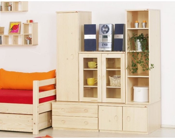 Dvířková skříň D409-Domino je vyrobena ze smrkového masivu výběrové kvality a patří do nábytkového systému Domino.