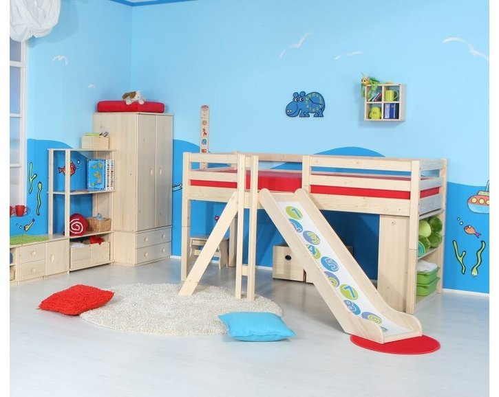 Tato dětská postel s klouzačkou se vyznačuje vysokou kvalitou zpracování a všechny její hrany a rohy jsou zakulaceny. Bezpečnost výstupu je u zvýšených postelí docílena speciální protiskluzovou úpravou.