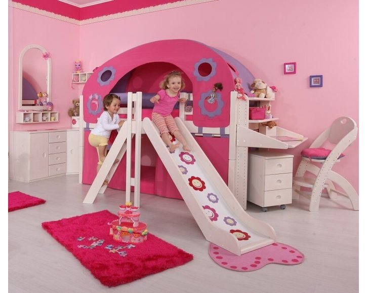 K posteli doporučujeme dokoupit krásný stan, tunel nebo domeček v krásné růžovo-fialové barvě. K většímu pohodlí můžete dokoupit chrániče nebo polštářky ve stejném barevném provedení. Dokoupením všech možných textilií vytvoříte svému dítěti prostor pro hraní i spánek. Dětská postel s touto barevnou kombinací je vhodná především do dívčích pokojů.