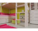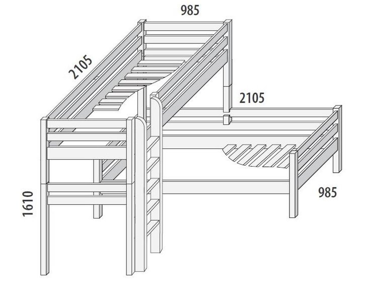 Dětská postel se vyznačuje vysokou kvalitou zpracování a zaujme zajímavým designem ve tvaru L. K výstupu na tuto masivní patrovou postel slouží pohodlný dřevěný žebřík, který je v ceně postele. Žebřík může být libovolně umístněn na pravé nebo levé straně postele, navíc si můžete vybrat, jestli má být šikmý, rovný nebo s otvory.