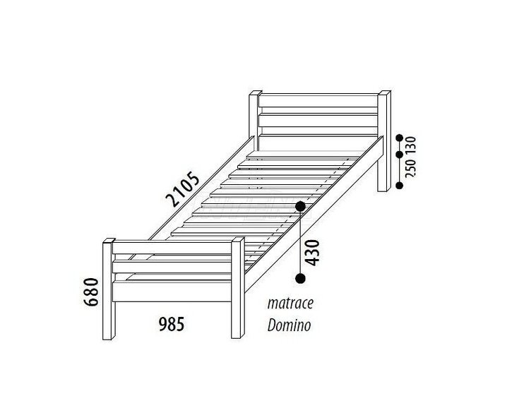 Postel je dodávána bez roštu a matrace 90x200 cm, bez textilních doplňků a chráničů.