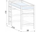 Postel je opatřena zábranou proti pádu zajišťující bezpečnost vaších dětí. K výstupu na postel slouží dřevěný žebřík. Díky nášlapům o délce 9 cm je tak výstup velmi pohodlný. Žebřík může být umístěn jak na levé tak na pravé straně postele, zákazník si stranu zvolí sám při montáži. Prostor od země po vrchni bočnicí je 136 cm. Spodní prostor pod postelí lze využít pro hraní nebo zde můžete umístit psací stůl či jiný druh nábytku, který je možno dokoupit - Viz nabídka příslušenství.