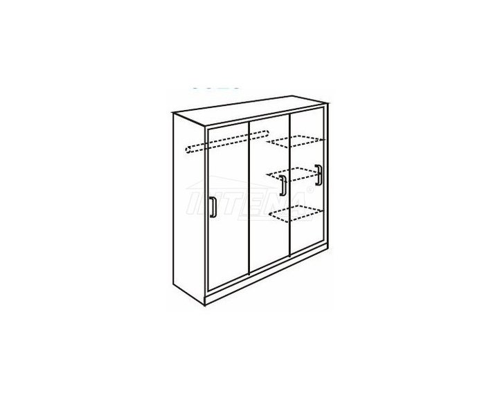 Pološatní s posuvnými dveřmi IA3323A je vyrobená z lamina buku. Skříň je rozdělena do dvou částí, kdy levá strana skříně je užší a obsahuje tři výškově nastavitelné police. V pravé části skříně je pak prostor s šatní tyčí pro pověšení kabátů.