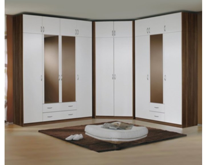Rohová šatní skříň dvoudveřová IA61550 je vyrobená z lamina v barevném provedení ořech-bílá. Skříň je vybavena šatní tyčí na ramínka a sedmi stavitelnými policemi + jedna dlouhá police nad šatní tyčí. Skříň je vybavena pěknými úchytkami, které dokreslují její celkový vzhled.