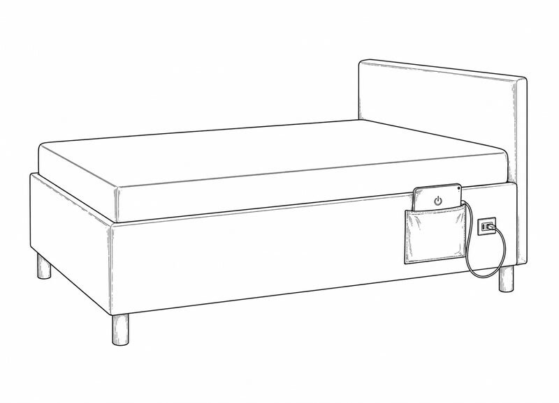 Znáte ten pocit, kdy se probudíte a zjistíte, že ležíte na svém drahém mobilu či tabletu? S postelí NEXUS 2 je tomu konec. Na boku postele se nachází elegantní polstrovaná kapsa, která byla vyvinuta speciálně pro tablety, mobilní telefony nebo oblíbené knihy. Vaše zařízení je zde chráněno před pádem, a přitom zůstává v dosahu ruky – doslova na pár centimetrů od nabíjecích portů.