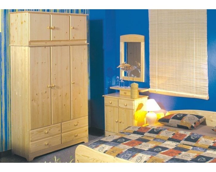 Třídveřová šatní skříň Natali 125, masiv smrk je vyrobena ze smrkového masivu a patří do nábytkové řady nábytek Gazel. Obsahuje 4 zásuvky na kovových pojezdech.