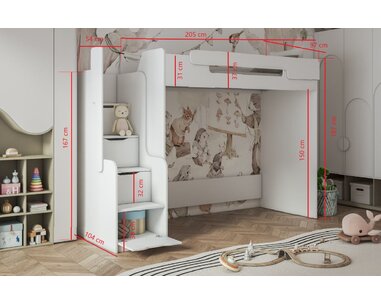 Multifunkční patrová postel Dori s čalouněnou postelí, lamino bílá, Lagos II