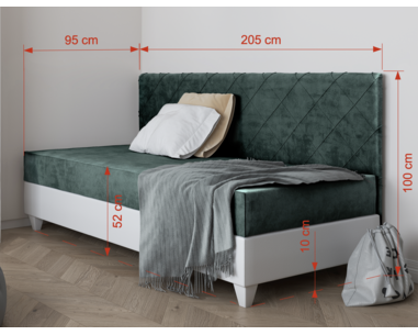 Cena včetně čalouněné postele, vrchní postele a roštové desky. Nosnost 90 kg, lamino ...