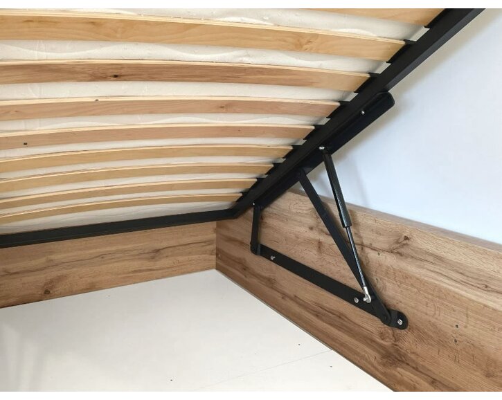 Rám roštu je kovový, černě lakovaný, profil ca 3 x 3 cm. Dřevěné lamely roštu zajišťují optimální rozložení hmotnosti uživatele. Vyklápění roštu je zajištěno pomocí kvalitních plynokapalinových pístů, díky nimž je zvedání a zpětné sklopení roštu velmi jednoduché.