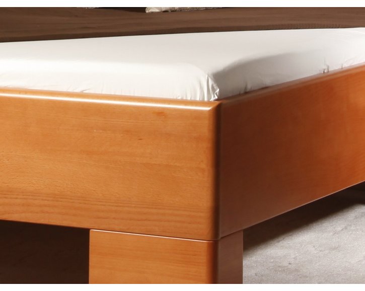 Tato postel pro seniory je vyrobena z masivu buku v průběžném provedení, které dává plně vyniknout přirozené kráse a struktuře masivního buku. Povrchová úprava je provedena pomocí speciálního napouštěcího oleje nebo přírodního laku. Zadní část hlavového čela a vnitřní neviditelné plochy jsou povrchově upraveny pouze jednou matnou vrstvou.