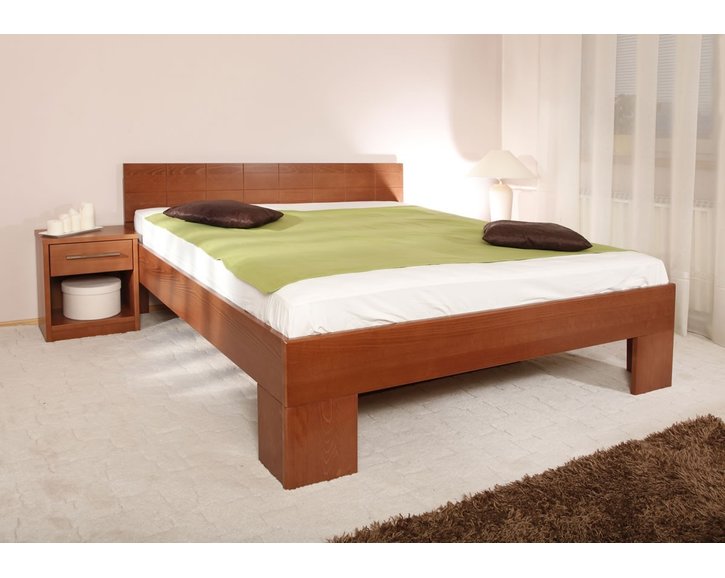 Postel pro seniory - dvoulůžko VAREZZA 6B - konstrukce postele je velmi pevná a stabilní, povrch materiálu je hladký a kvalitně opracovaný. Postel je vyrobena z masivního buku o síle 3 cm v průběžném provedení, který dává plně vyniknout přirozené kráse a struktuře masivního dřeva. Čelo postele je ozdobeno drážkováním, které dodává posteli pěkný vzhled.
