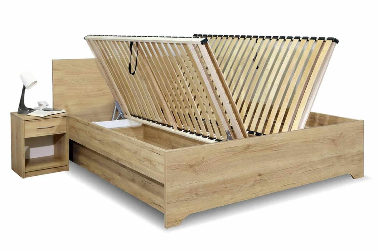 Postel dvoulůžko s úložným prostorem HUGO, boční výklop