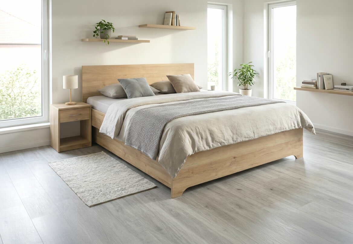 - laminovaná deska ( zkráceně "lamino") patří mezi nejdostupnější materiály na postele a nábytek