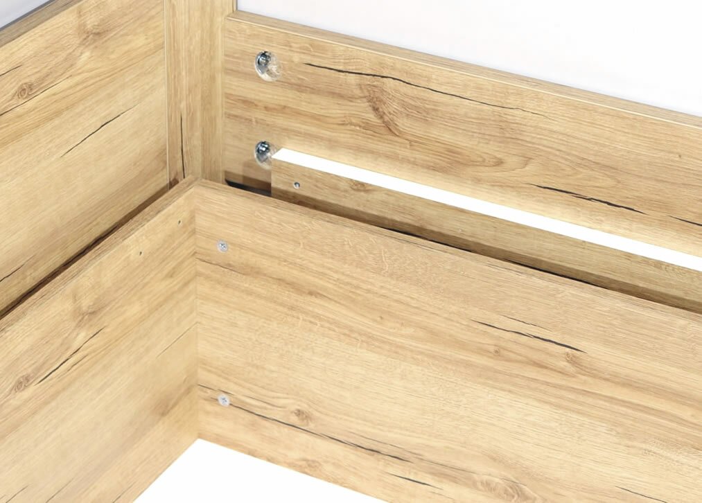 Postel MALAGA je vyrobena z laminované dřevotřísky o síle 25 mm, 18 mm (úložný box) a nabízí možnost výběru z více barevných dezénů. Hrany jsou olepeny ABS hranou o síle 0,5 a 2 mm.