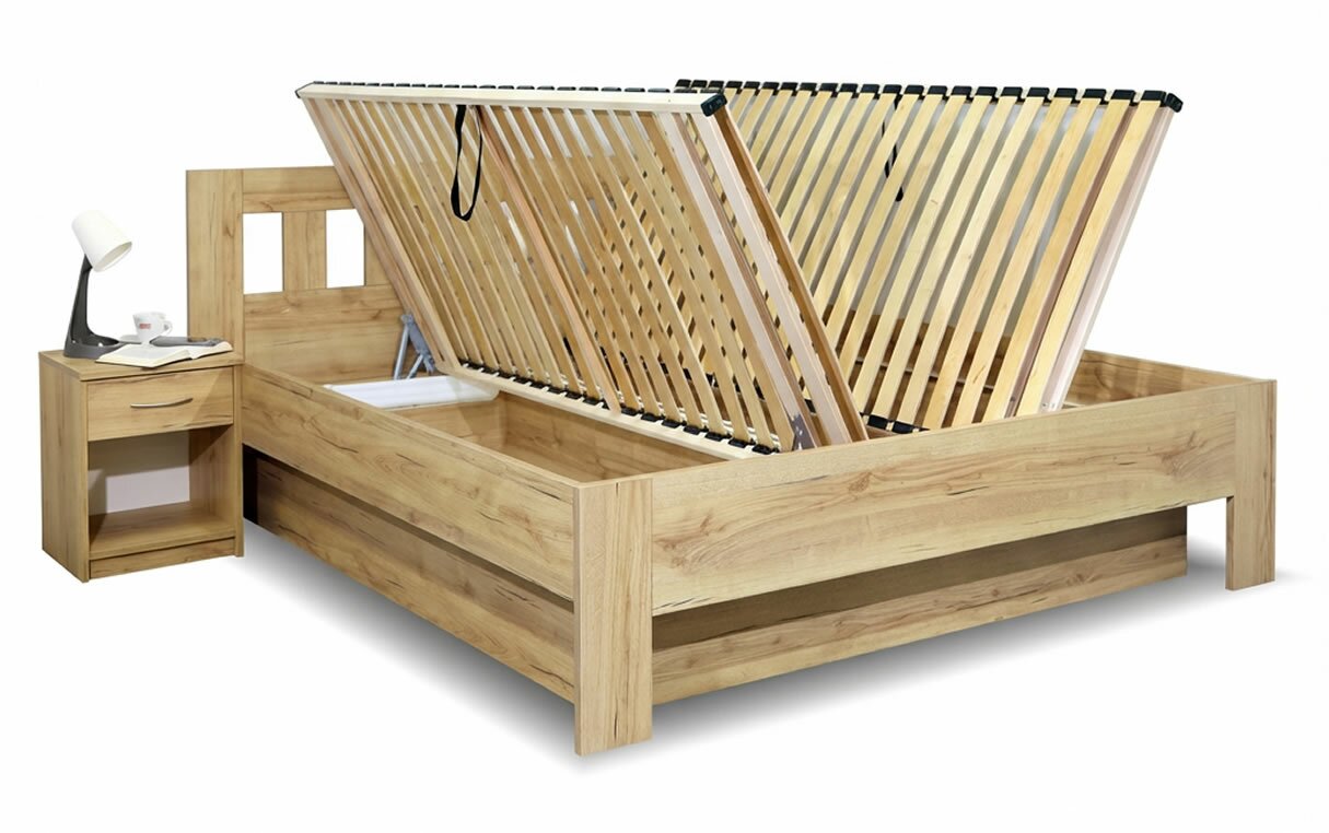 Manželská postel s úložným prostorem, boční výklop MALAGA 160x200, 180x200 je vhodná do jakéhokoli pokoje.