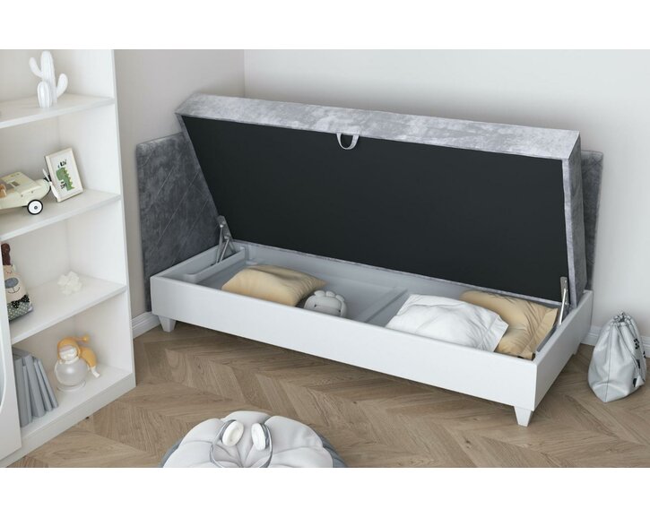 Cena včetně čalouněné postele, vrchní postele a roštové desky. Nosnost 90 kg, lamino o tloušťce 18 a 22 mm. Levé a pravé provedení.